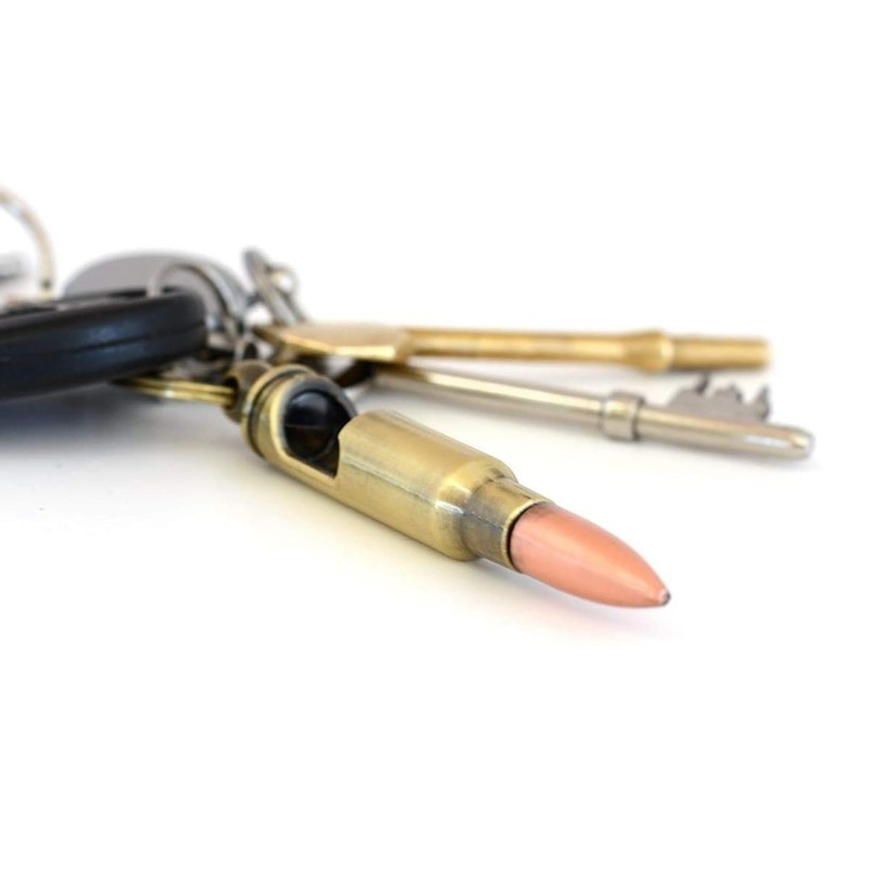 Bar Amigos - Retro Military Bullet Bottle Opener Keyring 3" .308 Caliber Winchester, Alloy, Distressed Brass, 8 x 1 x 1 cm