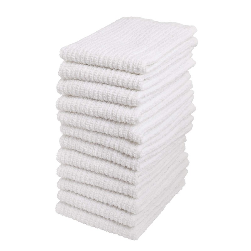 Living Fashions Bar Mop Cleaning Kitchen Dish Cloth Towels,100% Cotton, Machine Washable, Everyday Kitchen Basic Utility Bar Mop Dishcloth Set of 12, White