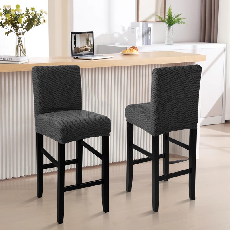 Bar Stool Covers Set of 2, Stretch Removable Polar Fleece Barstools Covers, Waterproof Pub Counter High Stool Chair Covers for Cafe Kitchen Dining Room