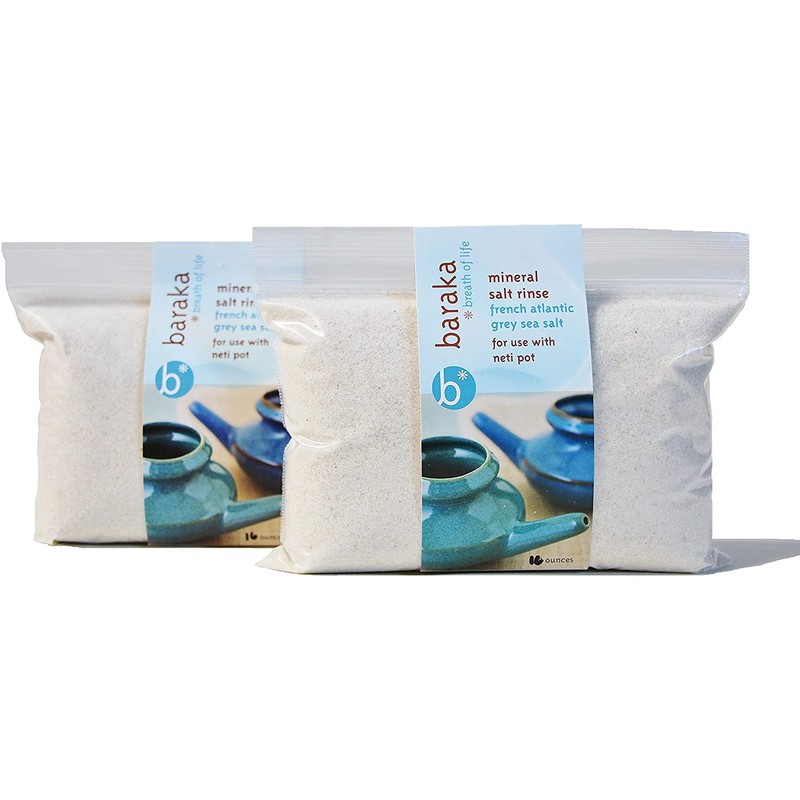 Baraka Neti Pot Mineral Salt Sinus Rinse Saline Solution - Use with Neti Pot - Premium No Burning French Atlantic Sea Salt for Sinus Relief (16 oz - 2 Pack)