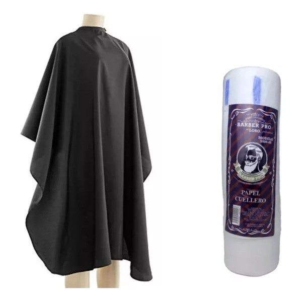 barber pro y ari Papel Cuello Barber 5pzas + Capa Negra Nylon