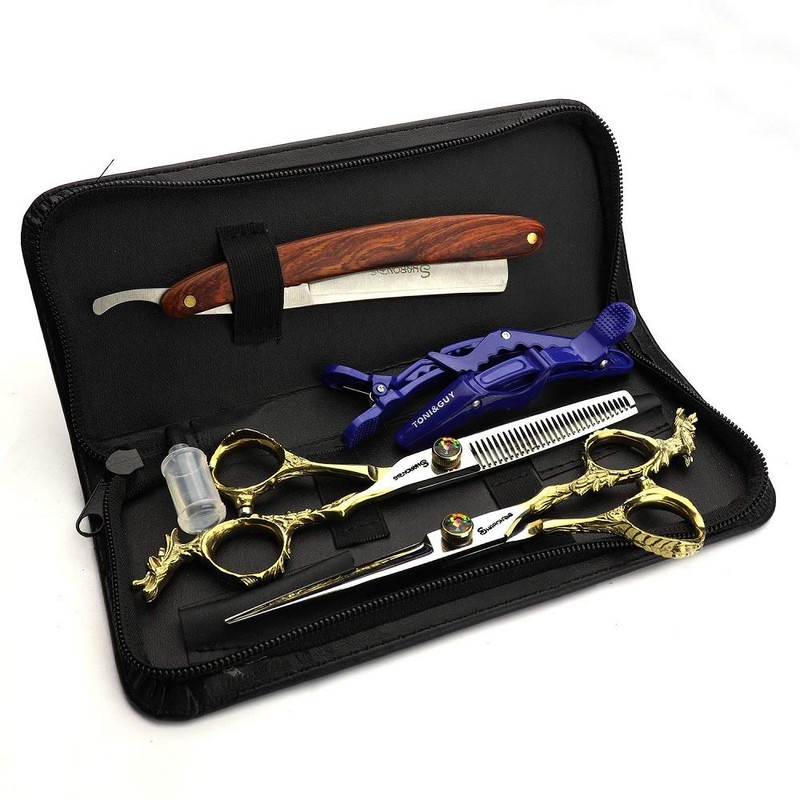 Barber Scissors 6' Professional Hair Scissors and Thinning Scissors + Razor + Scissors Bag Set