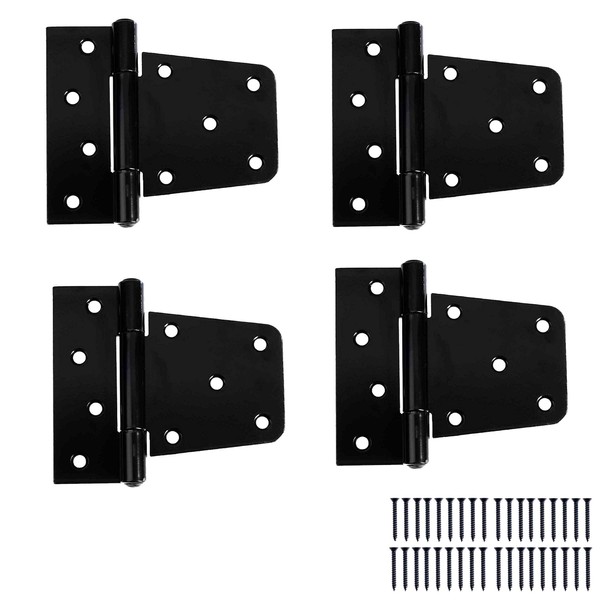 Barcaloo 3-1/2 Heavy Duty T Hinge Gate Shed Door Hinges, 4 Pack - Black Hinges for Gate, Barn or Storage Shed