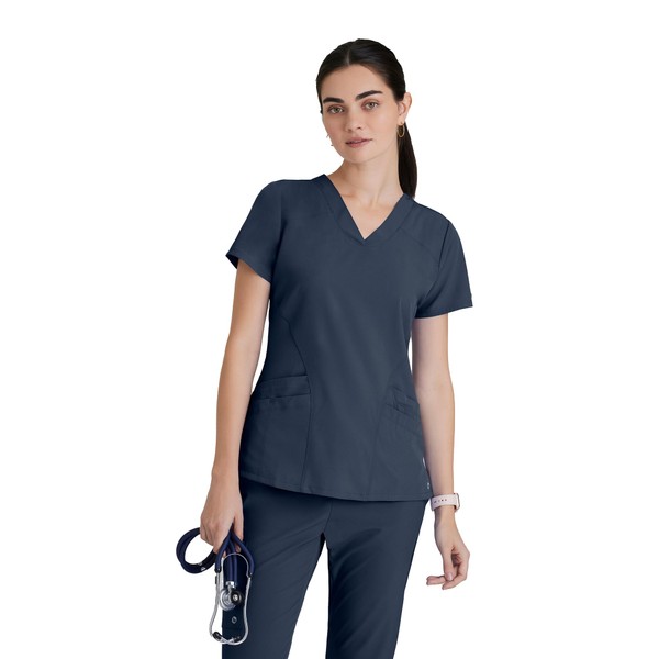 BARCO One Pulse Classic Fit Scrub Top for Women – Steel, 5-Pocket V-Neck Scrub Shirt w/ 360 Spandex Stretch, Moisture Wicking, Anti-Static and Quick-Shed – Medium, Regular Fit