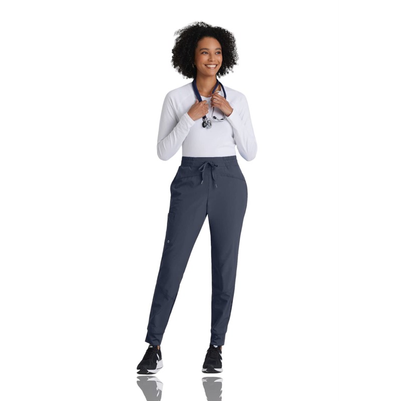 - Comfort Meets Function: Revolutionary temperature-regulating technology in this jogger-style scrub pant helps you stay cool when it's hot and warm when it's not; athletic, 4-way stretch fabric and perforated blocked detail maximize breathability while allowing you to move freely throughout the workday