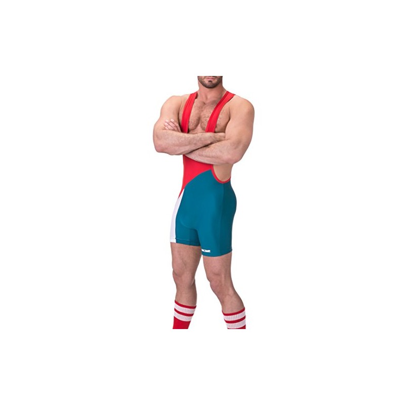 Barcode Berlin 91345 Singlet Luckenwalde - Wrestling Suit - Ringer Suit - Ringer Jersey (Medium, Red / White / Petrol)