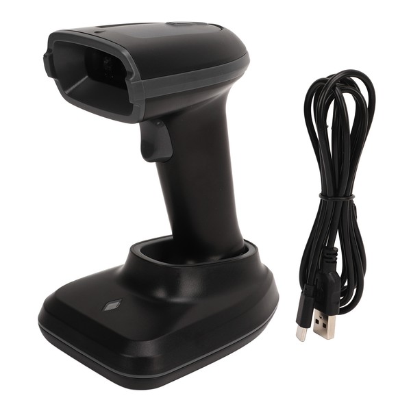 1、Automatic Sensing and Scanning: When adjusted to sensor scanning mode, scanning is activated when the sensor detects a change in ambient brightness. Both sensor scanning mode and continuous scanning mode can supports easy operation without manually pressing the trigger button. Place the scanner on the bracket and enjoy a convenient scanning experience. 2、2.4GHz Wireless Design: Plug and play, easy to install mini USB receiver, which is included barcode scanner holder. The wireless transmission distance can get to 80 meters. The USB receiver automatically pairs without the need to install any software or applications. The wireless receiver can be installed at the bottom of the scanner handle to prevent the USB receiver from being lost. 3、Fast and Accurate Reading: The 32 bit CPU has strong decoding ability, with a speed of up to 300/sec. There are two working modes of instant upload mode and storage mode. Internal offline storage supports up to 100000 barcodes in offline storage mode. Scan and store barcodes when away from the receiver, and then update the data to your device when returning to wireless transmission range. 4、Vibration and Sound Alarm: Equipped with two modes of vibration and sound. When you need a quiet working environment, simply change the setting to vibration mode. In addition, when the scan is successful, you will receive a vibration alarm. 5、Rechargeable Battery: Integrated 1500mAh lithium ion battery, fully charged and able to stand by for more than six months. Scan barcode continuously for more than one week. It can be charged through any USB 2.0 port.