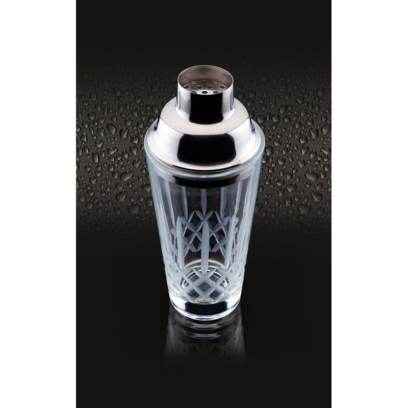 BarCraft BCSHAKGLS Cut Cocktail Shaker with Stainless Steel Strainer, Etched Glass, 8 x 8.5 x 18 cm