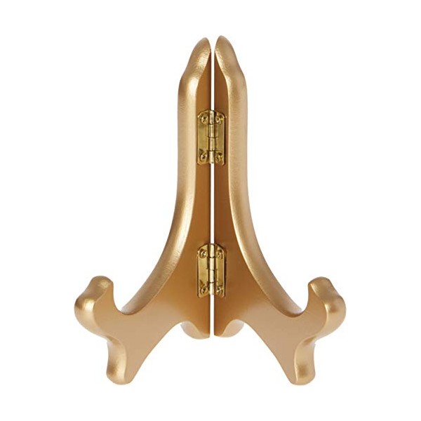 Bard's Hinged Gold Wood Stand, 5" H x 5" W x 3.5" D (for 5" - 7.5" Plates)
