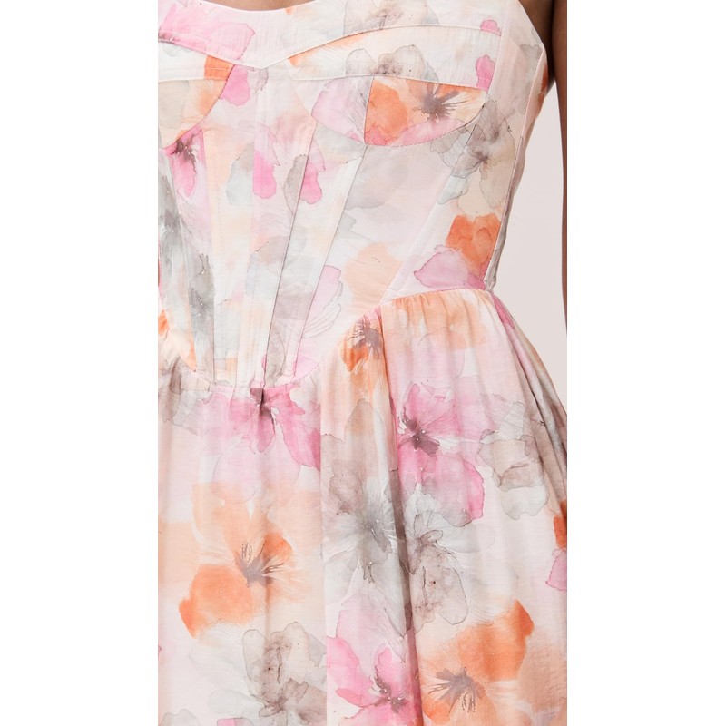 - Boned bodice with non-slip rubber binding, Water-color inspired floral print