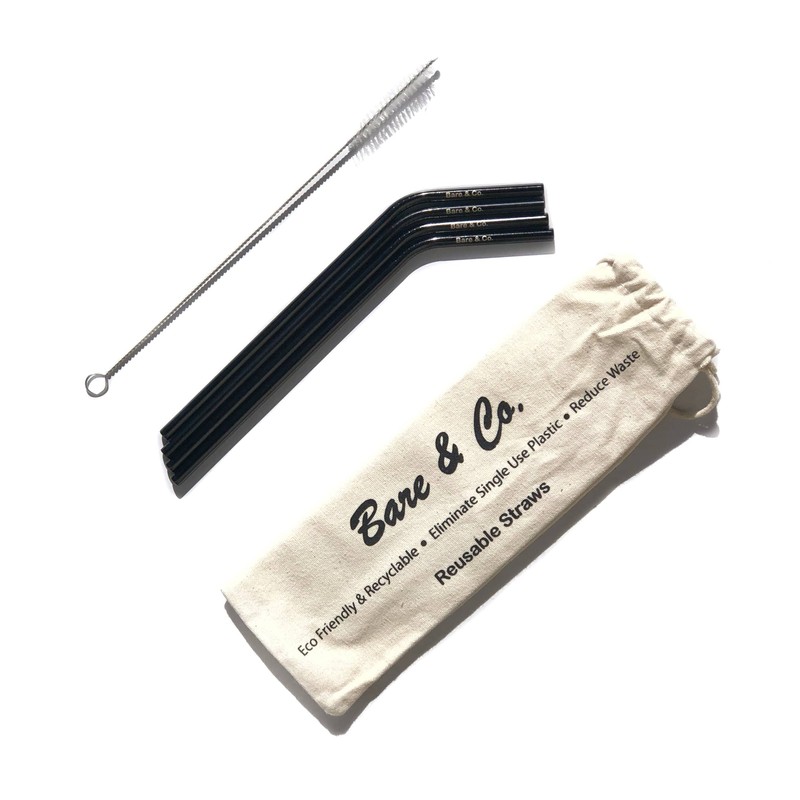 These environmentally-friendly bent Black Stainless Steel Straws by Bare & Co. are a stylish alternative to plastic straws. These 100% recyclable, reusable and BPA free straws are kind to the environment, safer, non-toxic and a cleaner option for your overall health.
