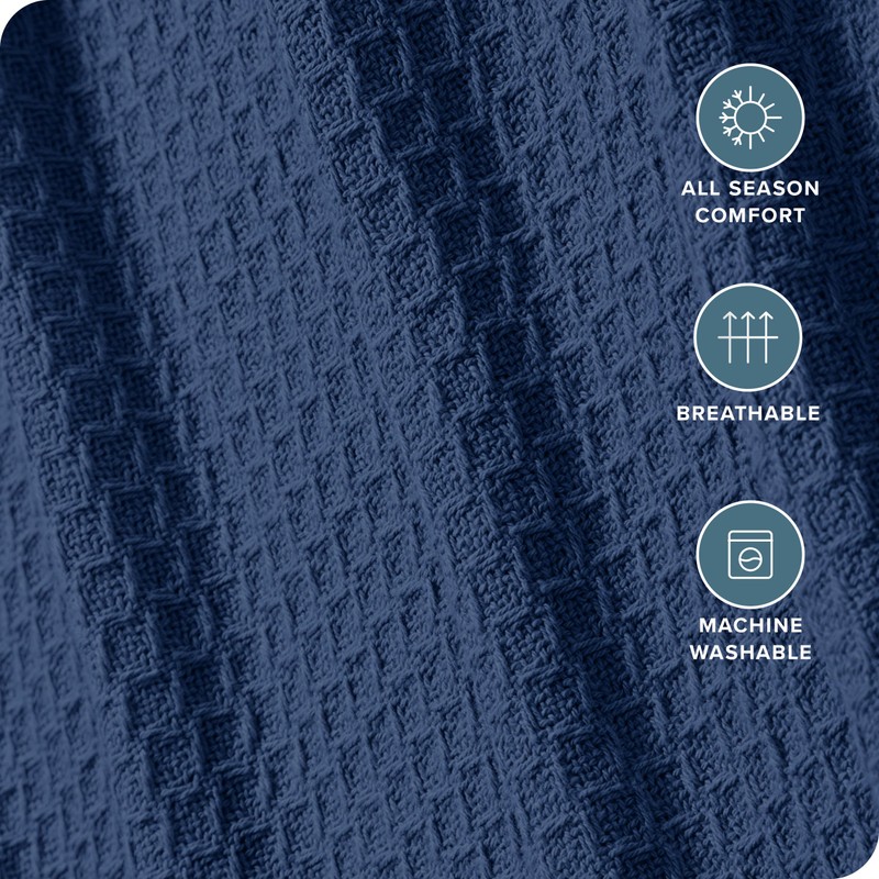 Bare Home Dark Blue Waffle Blanket, Extra Long 66Wx90L, 100% Cotton, Soft & Breathable Blanket for All Seasons, Lightweight, Perfect for Layering Bed, Sofa & Couch (Twin/Twin XL, Dark Blue)