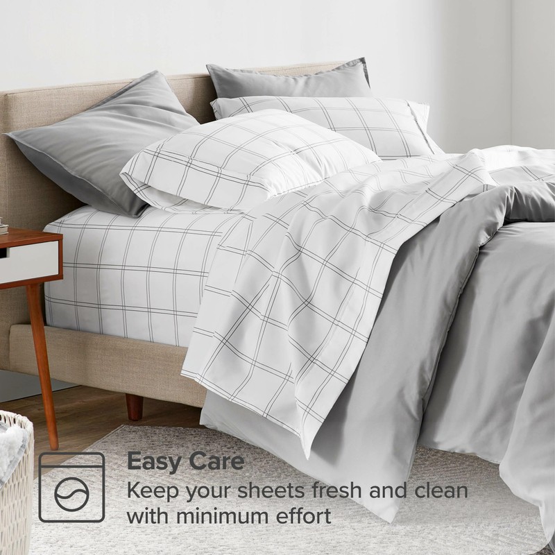 Bare Home Full Sheet Set - Luxury 1800 Ultra-Soft Microfiber Full Bed Sheets - Double Brushed - Deep Pockets - Easy Fit - 4 Piece Set - Bedding Sheets & Pillowcases (Full, Modern Plaid - White/Grey)