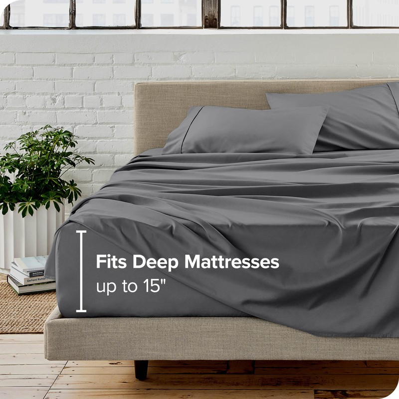 Bare Home Queen Sheet Set Dual Pocket - 1800 Ultra-Soft Microfiber Queen Bed Sheets - Double Brushed - Queen Sheets Set - Deep Pocket - Bedding Sheets & Pillowcases (Queen, Grey)