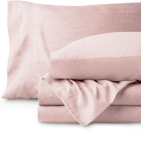 Bare Home Sandwashed Queen Sheet Set - Premium 1800 Ultra-Soft Microfiber Bed Sheets - Breathable Bedding - Hypoallergenic - Stain Resistant (Queen, Sandwashed Dusty Pink)