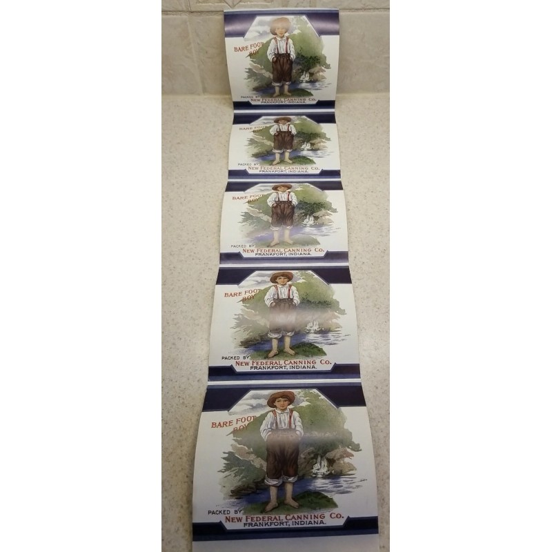REPRODUCTION Vtg Barefoot Boy set of 5 Self Adhesive Labels Crafting Decorative Supply. Condition is "New" and unused. Each measures 4 3/4" X 4 3/8". Shipped with First Class mail.