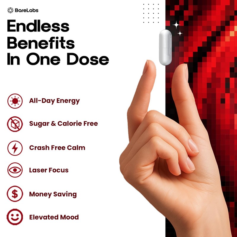 BareLabs Extended Release Caffeine Pills + Caffeine L-Theanine + Focus & Energy Supplement + No Jitters, No Crash + Natural - 120 Capsules