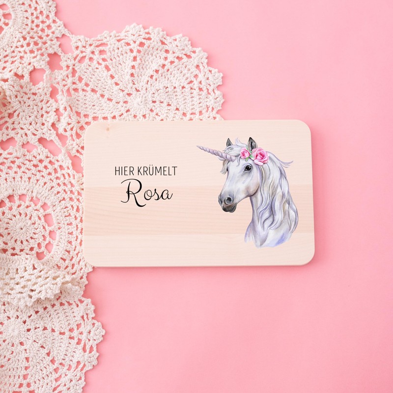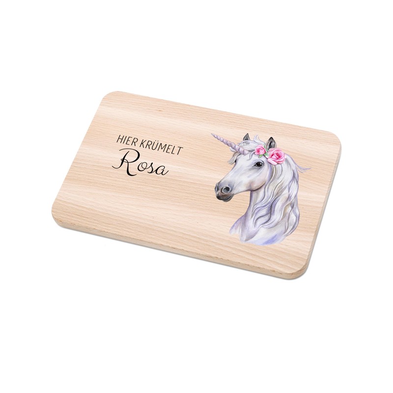 Bärenfreunde® - Individual Wooden Board with High-Quality Special Print for Children - Personalised Breakfast Board - Cute Motif Board with Name (Unicorn Right)
