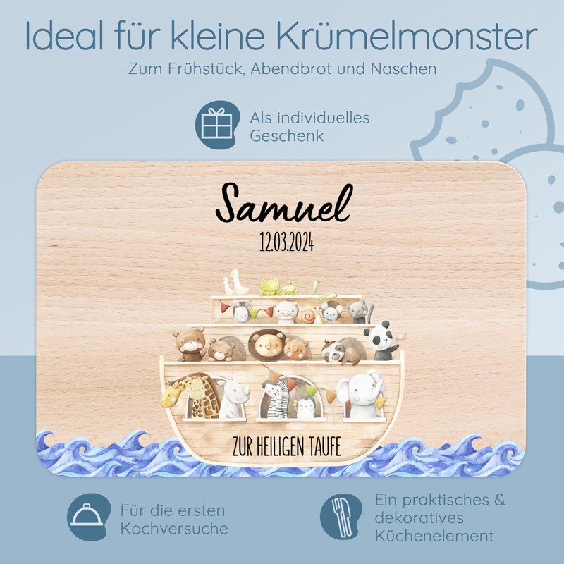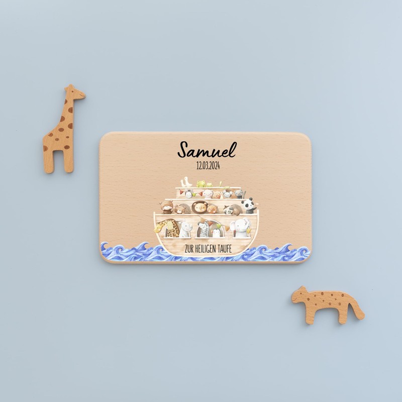 Bärenfreunde® - Individual Wooden Board with High-Quality Special Print for Christening - Personalised Breakfast Board - Cute Motif Board with Name as Christening Gifts (Baptism Animals Round)