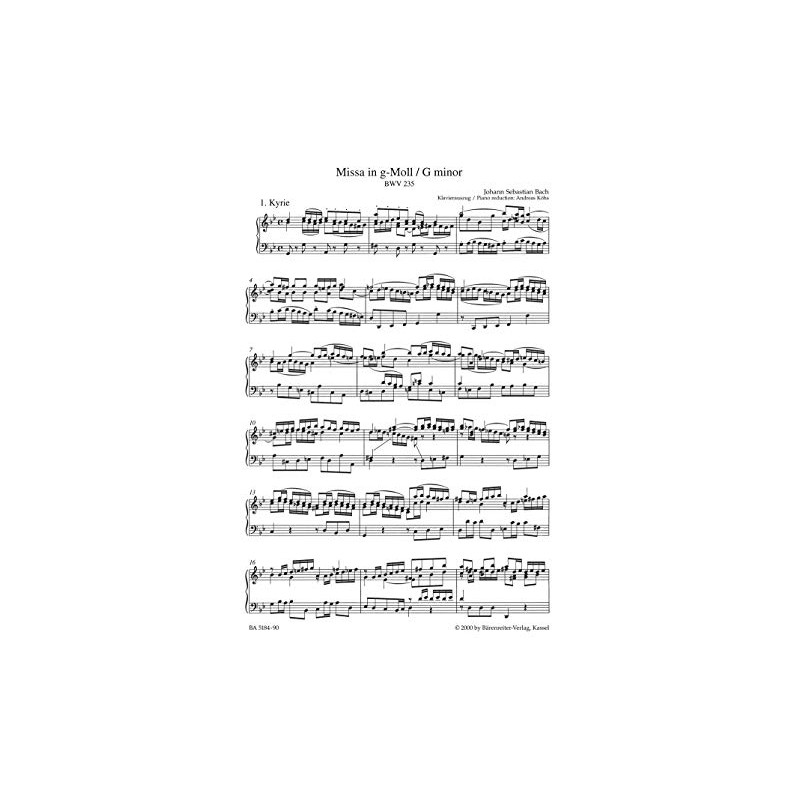 BARENREITER BACH J.S. - MISSA IN G MINOR BWV 235 LUTHERAN MASS - VOCAL SCORE ...