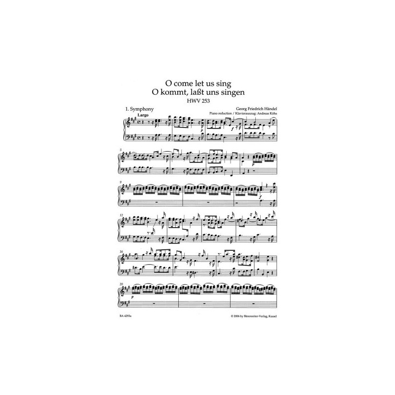BARENREITER HAENDEL G.F. - O COME LET US SING HWV 253 - VOCAL SCORE Classical sheets Choral and vocal ensembles
