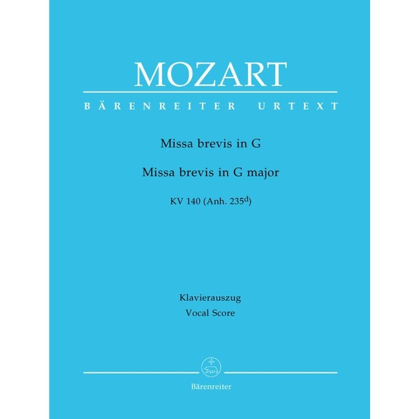 BARENREITER MOZART W.A. - MISSA BREVIS IN G MAJOR KV 140 (ANH. 235D) - VOCAL ...