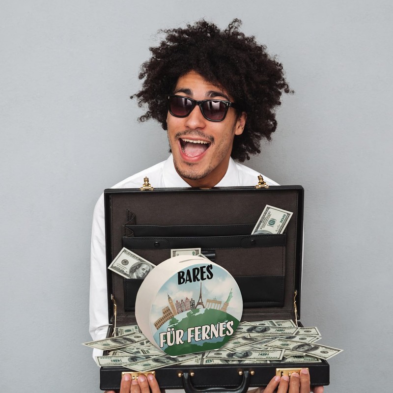 - Are you looking for a money box that you can use to save on your next trip? Then this beautiful money box with funny travel motif is perfect for you.