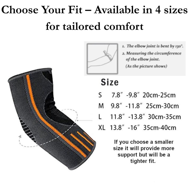 Bargain Wells Elbow Support Compression Sleeve – Joint Support for Tennis Elbow, Golf Elbow, Strains & Pains – Breathable Nylon Spandex – 4 Sizes – S to XL (1, Black (Orange Striped), XL)