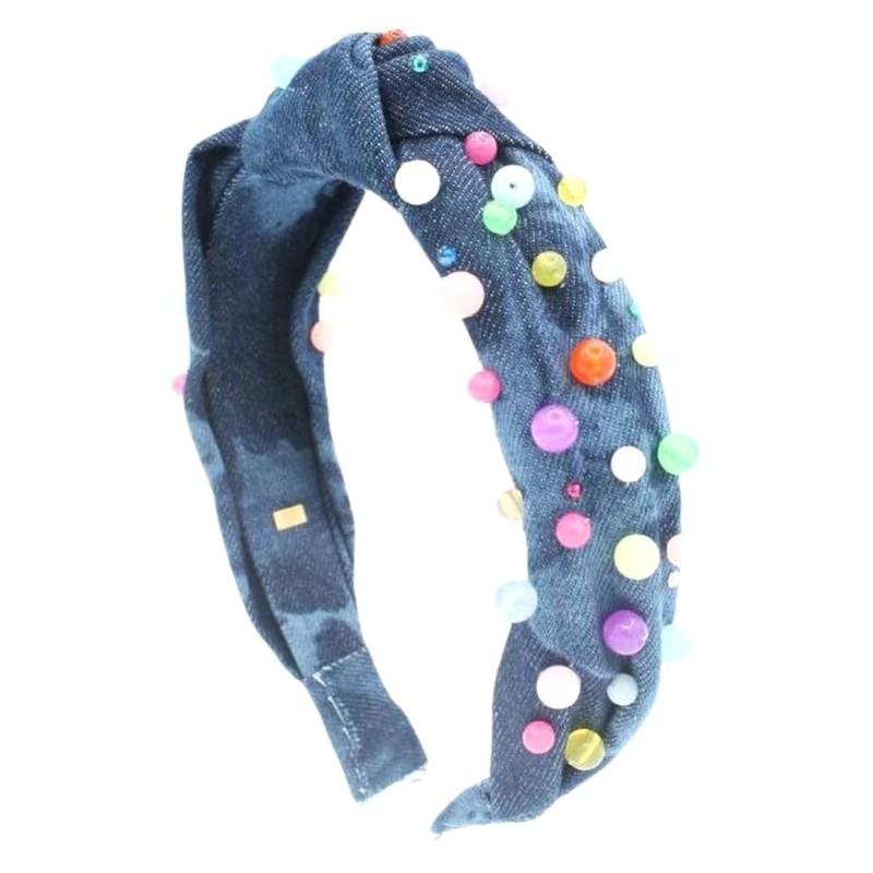 Bari Lynn Light Denim colorful Pearlized Knot Headband with Crystals 1 piece