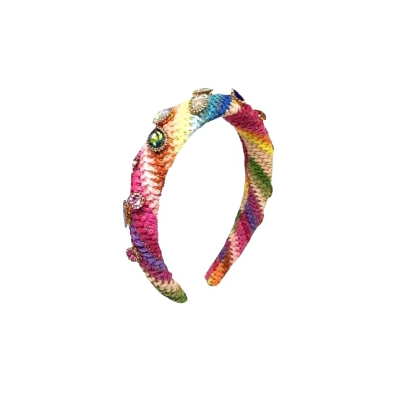 Bari Lynn Raffia Rainbow Zig Zag Headband withColorful Stones 1 piece
