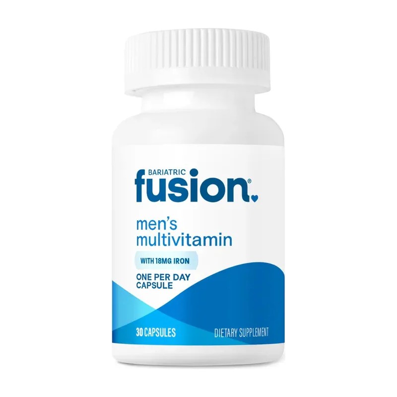 - Bariatric Fusion® Men's Multivitamin Capsules One Per Day: 30 Caps Suplemento Dietético Post Cirugía Bariátrica, Ayuda a Prevenir Deficiencias Nutricionales, Energía y Bienestar General Masculino. Este suplemento ha sido elaborado en un laboratorio aprobado por la FDA Bariatric Fusion® | Men’s Multivitamin One Per Day Ingredientes: Vitamin A,B,C,D,E, K1,B1,B2, Niacin, B6, Folate, Biotin 30mcg, Choline 25mg. Entre otros. Consulta la tabla nutricional para mayor información. Contenido neto: Bote con 30 Cápsulas Origen: USA Tamaño de porción: 1 Cápsula Porciones por envase: 30 RINDE 1 MES DE CONSUMO ¿PARA QUÉ SIRVE? Bariatric Fusion Men’s Multivitamin One Per Day es un suplemento multivitamínico diseñado específicamente para hombres que han pasado por una cirugía bariátrica, como un bypass gástrico, manga gástrica o banda gástrica. Este tipo de cirugías puede reducir la capacidad del cuerpo para absorber nutrientes, por lo que este suplemento está formulado para ayudar a cubrir esas necesidades nutricionales esenciales con una dosis diaria conveniente. Beneficios: