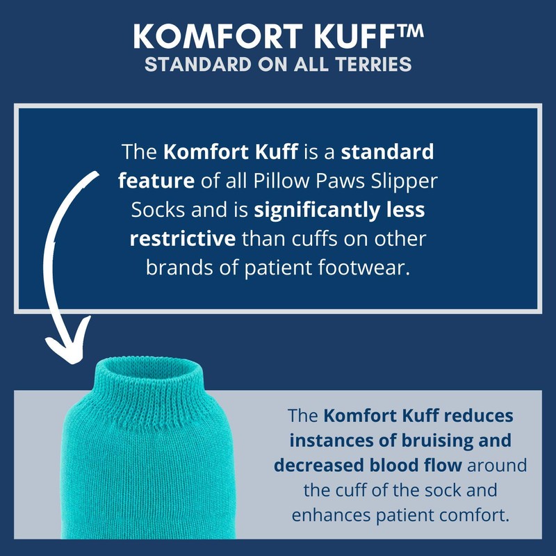 - Our socks provide warmth, comfort and peace of mind. The quality and comfort of our terry knit socks make them the most wearable patient footwear products in the industry. Reduces instances of bruising and decreased blood flow around the cuff of the sock and enhances patient comfort.
