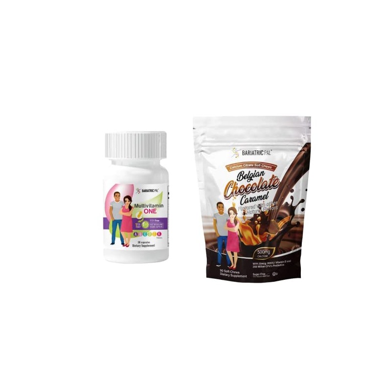 BariatricPal BariatricPal 30-Day Bariatric Vitamin Bundle (Multivitamin ONE 1 per Day! Iron-Free Capsule and Calcium Citrate Soft Chews 500mg with Probiotics - Belgian Chocolate Caramel)
