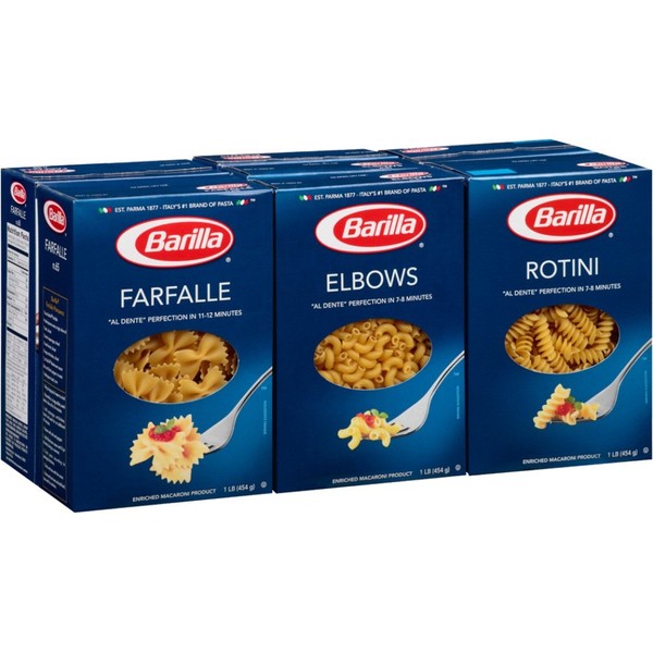 - Variety pack includes: 4 Farfalle, 4 Elbows and 4 Rotini