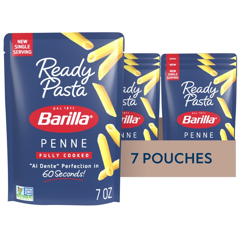 - PENNE PASTA: Pack of 7, 7-ounce pouches of fully cooked penne pasta made with 3 simple ingredients—a touch of extra virgin olive oil, a dash of sea salt, and BARILLA pasta