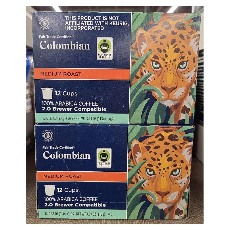 Barissimo The Coffee Expert Fair Trade Certified Colombian Medium Roast 12 Cups Coffee 3.99oz 113g (Two Boxes)