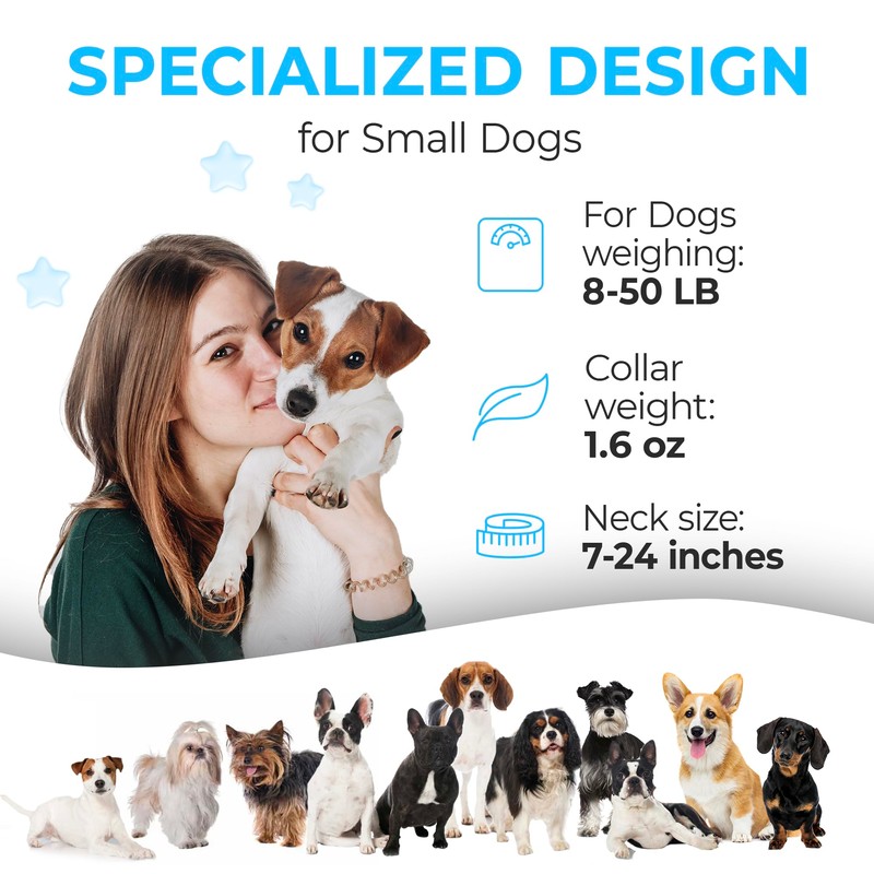 - For Small Breeds & Puppies: Our bark collar fits dogs with neck sizes from 7 to 24 inches. Thanks to this effective accessory, enjoy peaceful nights and positive interactions with neighbors