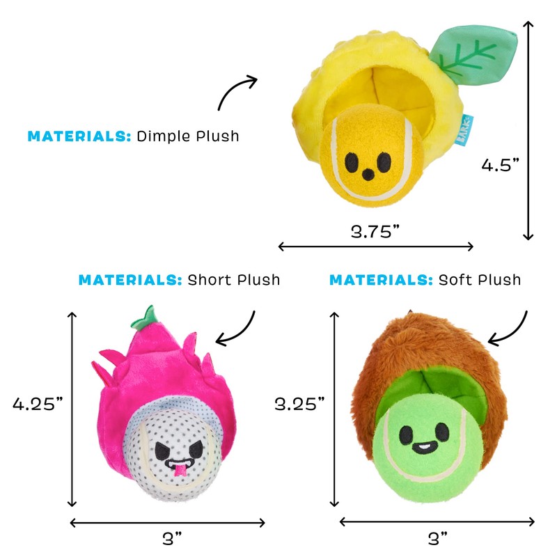 Barkbox Dog Toys – Fruity Cutie Tropical Trio Squeaker Ball Interactive Chew Toys – Durable & Tough Tennis Balls, Training, Exercise & Beating Boredom – Stimulating Plush, Small