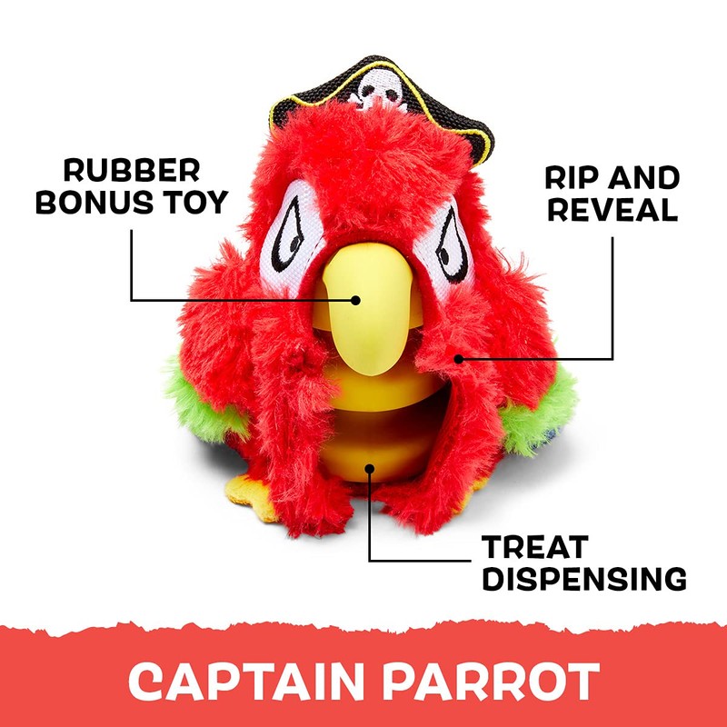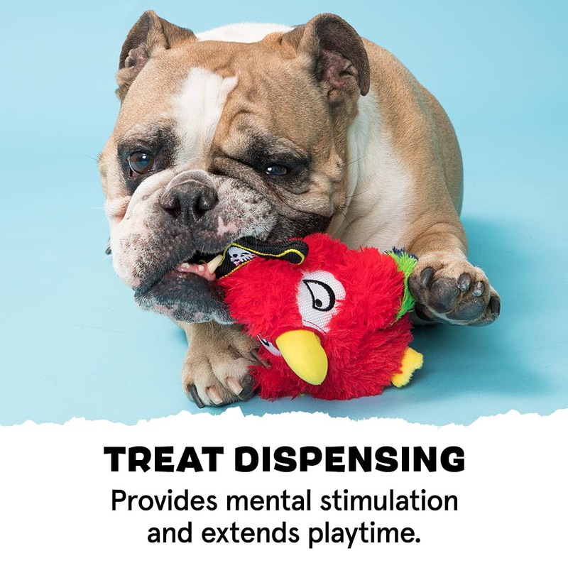 • Super Durable Toy: This durable parrot dog toy is perfect for dogs who love a challenge. Underneath Captain Parrot’s shreddable plush layer is a super durable and natural rubber core. If your pup makes it through the tough plush exterior, stuff snacks into the treat dispensing base for a teeter-tottering, mouthwatering chew-challenge!