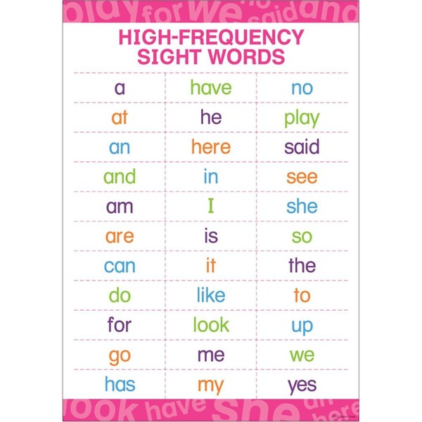 BARKER CREEK Early Learning Poster, High-Frequency Sight Words, Illustrating 33 of The Most Commonly Used Sight Words in The English Language, Home Learning and School Décor, 13-3/8" x 19" (1845)