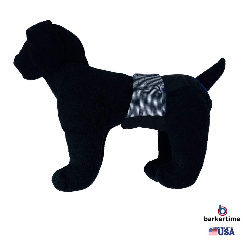 Barkertime Premium Wateproof Dog Diaper - Made in USA - Gingham on Black Waterproof Premium Dog Diaper for Incontinence, Male Marking, Females in Heat