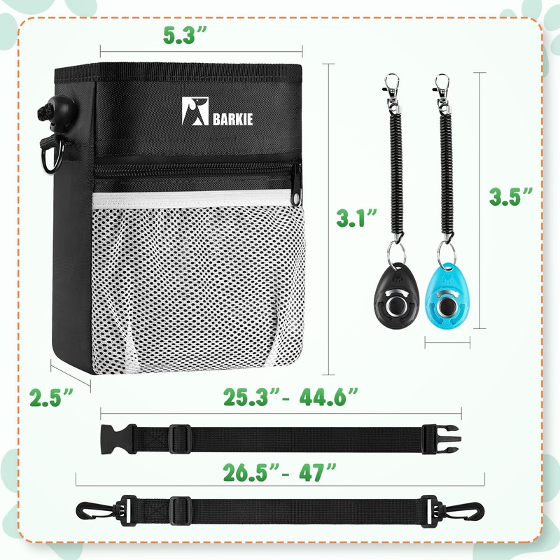 BARKIE Dog Treat Pouch and 2 Pet Training Clickers with Dog Positive Reinforcement Training Booklet (Black)