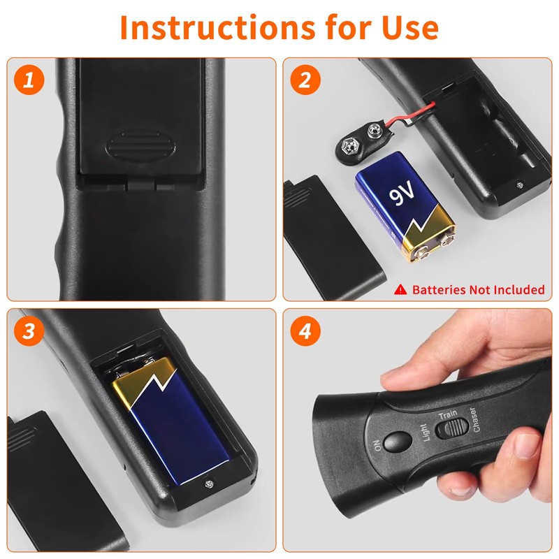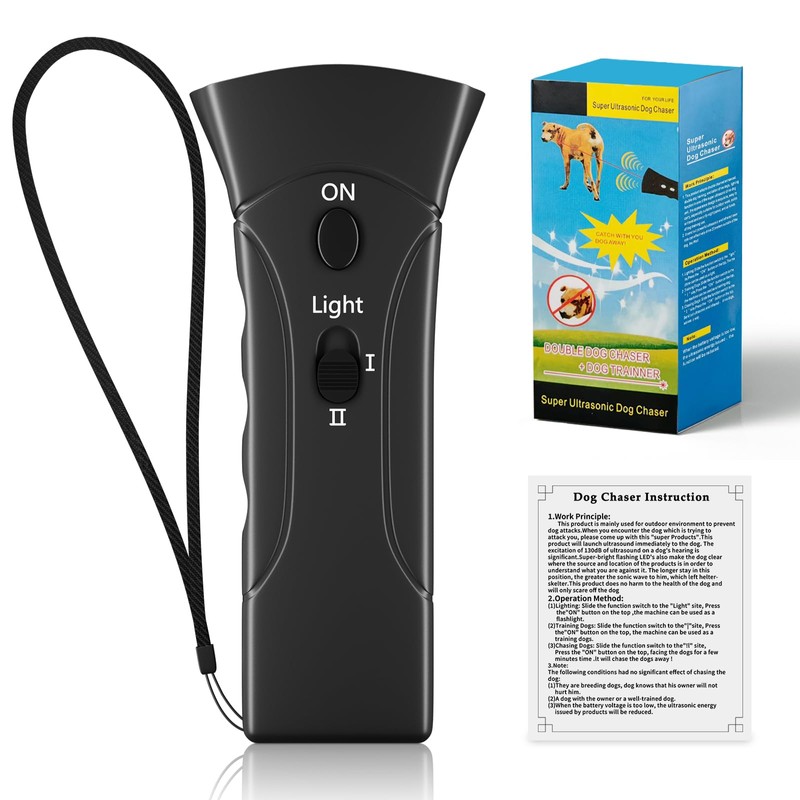 - 🐕【MULTIFUNCTIONAL LED FLASHLIGHT】Beyond bark control, this dog barking device includes a super bright LED flashlight, adding a second layer of protection. When the button is held down, it emits ultrasonic sound while flashing bright LEDs, helping correct unwanted dog behavior. The flashlight can also be used for visibility, lighting your way in dark environments.