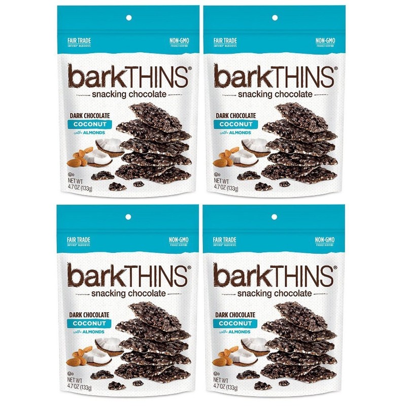 BarkThins Snacking Chocolate 4.7oz (Dark Chocolate Coconut, 4 Pack)
