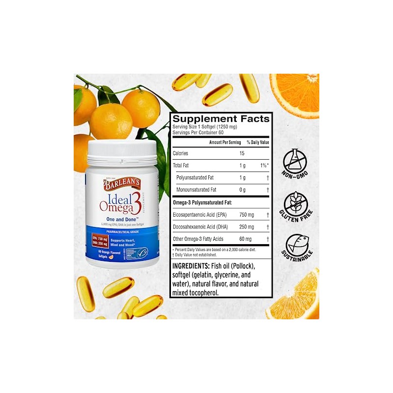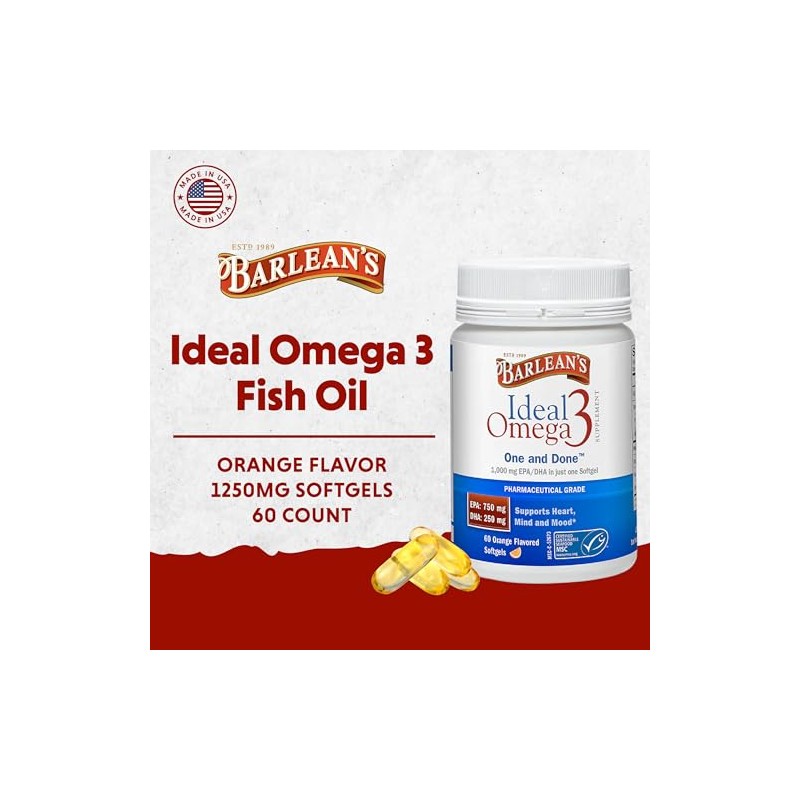 Barlean's - Barlean's Organic Oils Ideal Omega-3 Nutritional Supplement Softgel, 1000mg EPA/DHA, Orange Flavor, 60 Count. 🏆 Reconocido por su excelente relación calidad-precio. Diseño ergonómico y funcionalidad excepcional. ⭐ Miles de reseñas positivas. Ideal para quienes buscan lo mejor en calidad y estilo. Producto auténtico con satisfacción total asegurada. ¡No te quedes sin el tuyo y aprovecha esta oportunidad única!