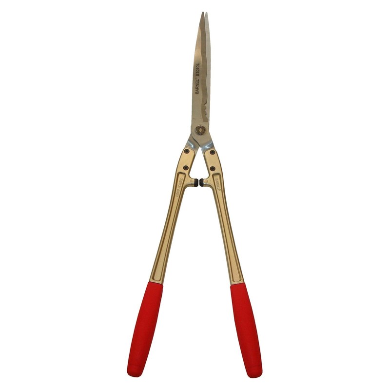 Barnel B1010L 28" Drop Forged Aluminum Hedge Shears. Serrated Base w/ Replaceable Hard Chrome Wavy Blades. Drop forged aluminum construction, lightweight yet heavy duty. Comfortable TPR grips.
