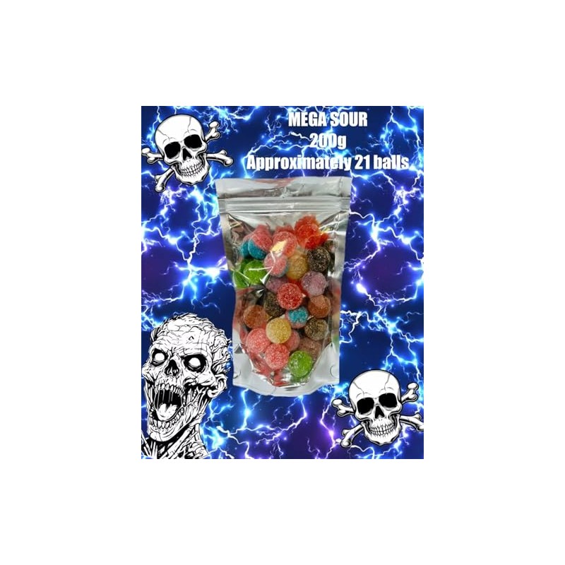 - Mixture of zombie bombs , mega sour cherries, mega sour lemons , hot or wot , 6 different flavours .
