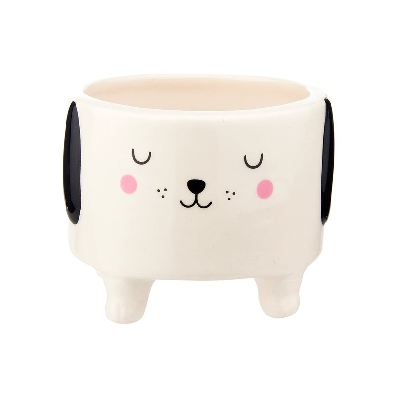 This adorable dog will not dig your precious plants! A loyal addition to your indoor garden, this charming planter is like our friendly Barney the Dog in a cream white with dainty details that create a cute expression.