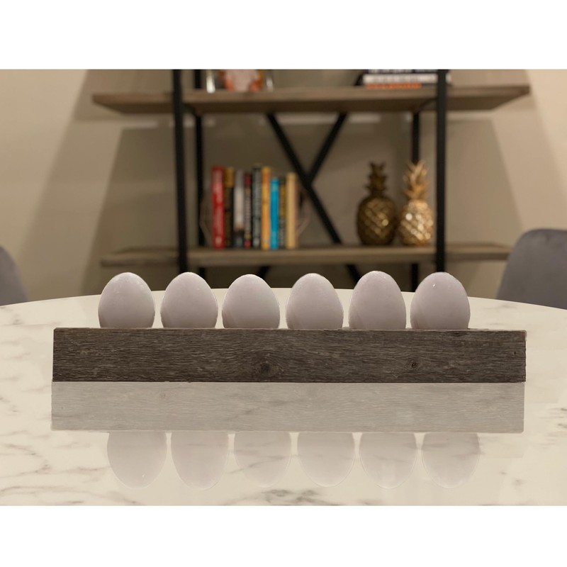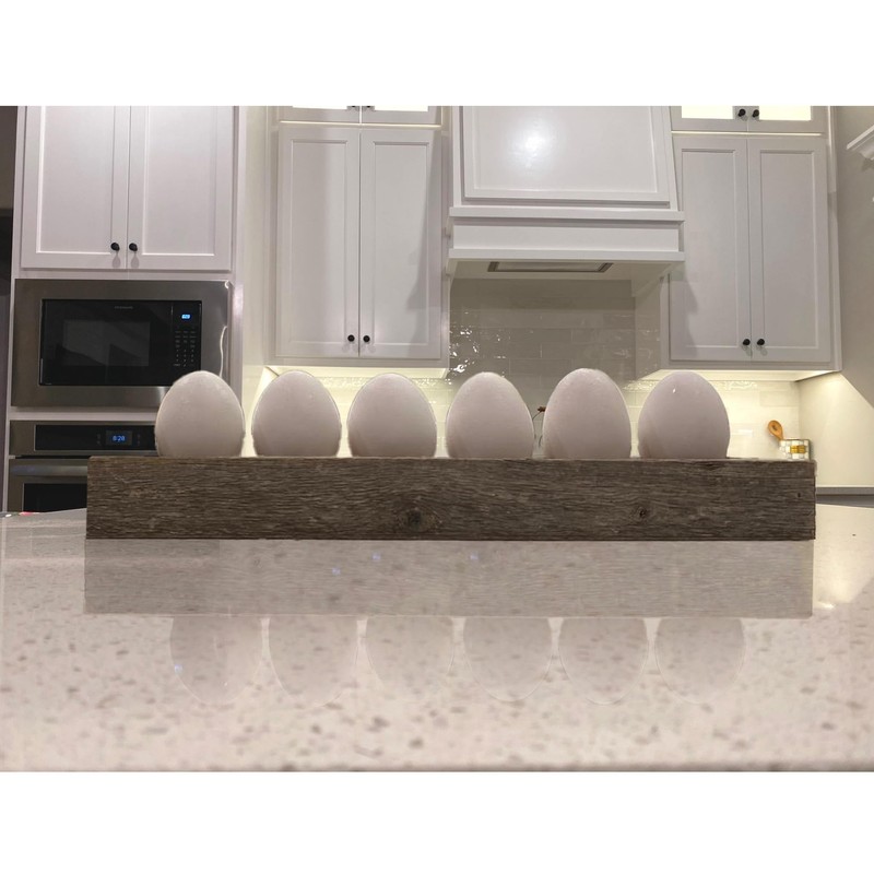 - Elevate Your Fresh Eggs: Store farm-fresh eggs in style with the weathered gray reclaimed wood egg holder, designed to showcase your eggs while keeping them within easy reach on your countertop.