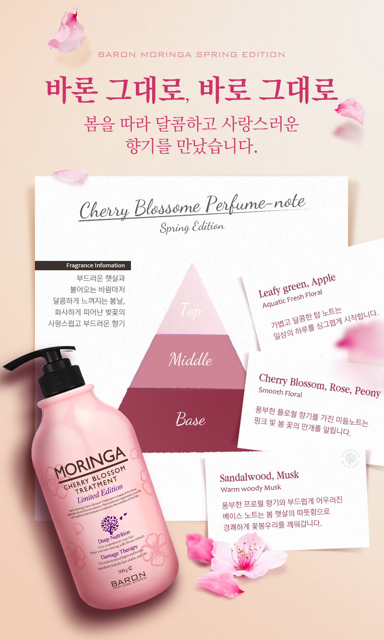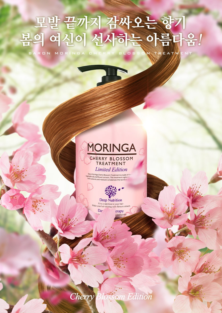Baron Moringa Cherry Blossom Shampoo 500g x2 + Treatment 500g / 바론 모링가 체리블라썸 샴푸 500g x2 + 트리트먼트 500g